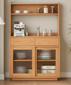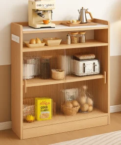 Wooden Kitchen Storage Cabinet With Sliding Doors And Shelves