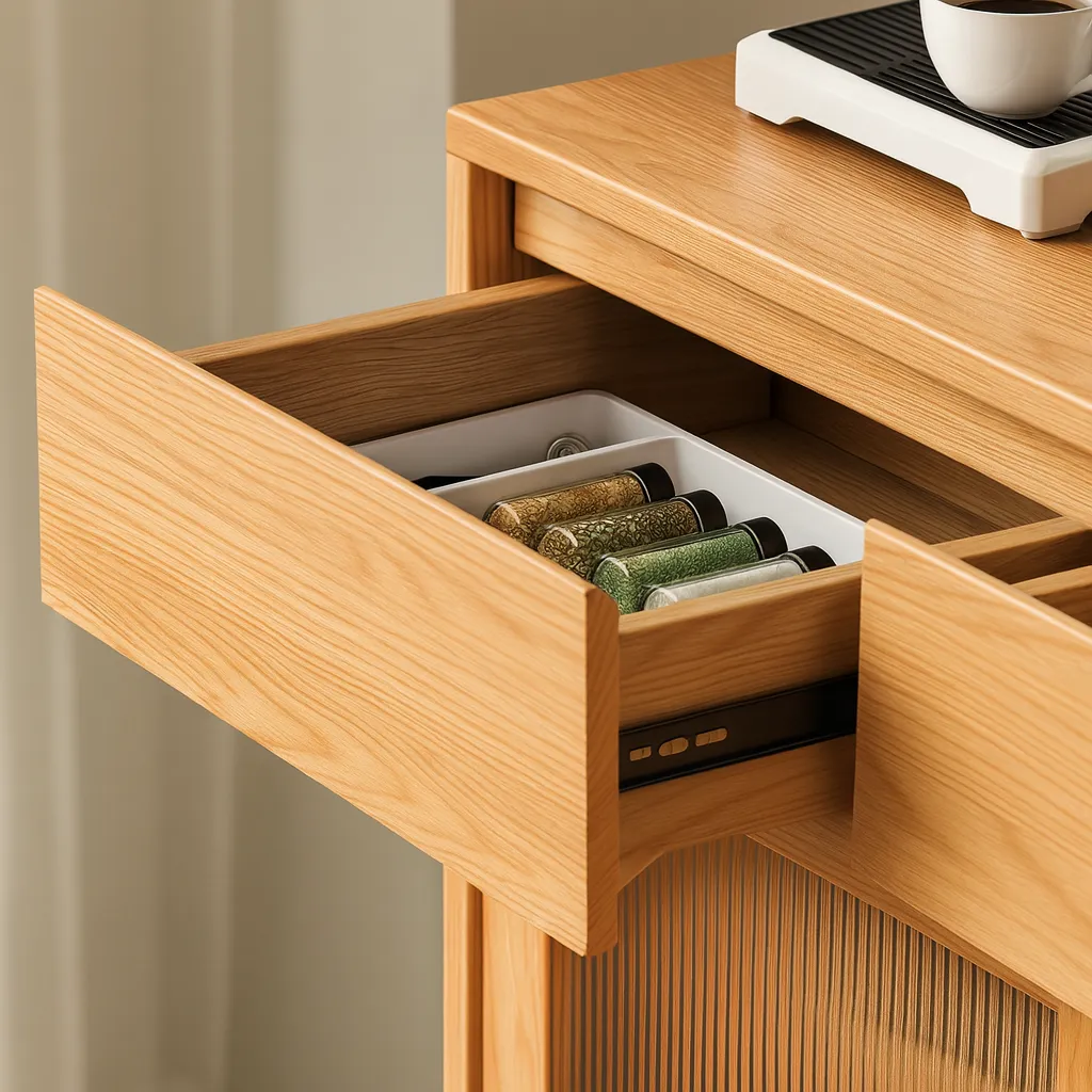 Modern Kitchen Storage Cabinet With Shelves And Drawers