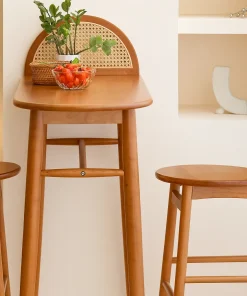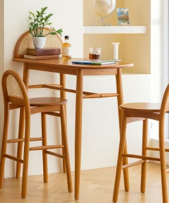 Crafted with a modern yet understated look, this wooden breakfast bar table brings a practical touch to kitchen and dining areas. Its slim, irregularly rounded top provides a casual surface ideal for quick meals, coffee breaks, or light food preparation. Supported by four tapered legs with a connecting trestle base, the table combines stability with a lightweight appearance. The raised back detail adds a unique design element, while also helping to define the table’s placement against a wall.