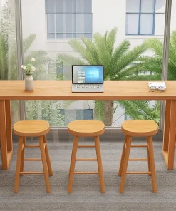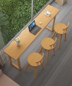 Crafted in a minimalist style, this wooden kitchen table highlights clean lines and a natural wood finish. The rectangular top provides ample surface space, making it suitable for meal prep, casual dining, or serving dishes. The sled-style base adds stability while maintaining a light and open appearance. Its geometric form enhances the table’s modern simplicity, allowing it to integrate seamlessly into various kitchen layouts.